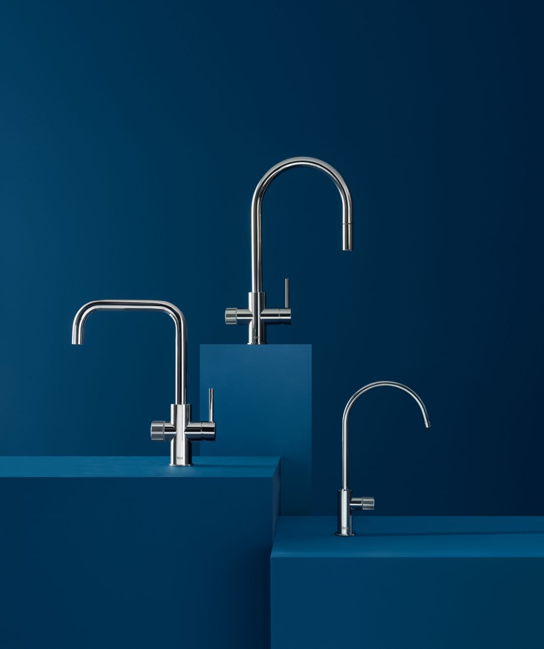 For added convenience and functionality, there are different spout heights for easy pot filling and dishwashing, and ergonomic handles for effortless control. The Roca Aquafy faucet collection redefines the interaction with the kitchen space.