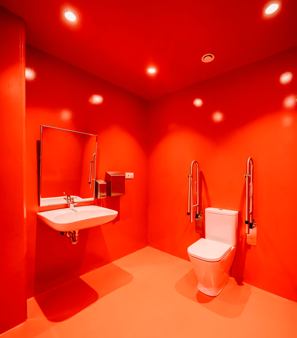 BIG-Bjarke Ingels Group turned to Roca as a partner in ensuring that the bathroom spaces applied the same spirit of innovation and sustainability that is found throughout the building. The bathroom design, which features resin surfaces in bold red tones across the floors, walls and ceilings, are complemented by Roca’s Modo Dash washbasins, custom-made in white and black. These unique long pieces reinforce a sense of spatial continuity and contemporary appeal.