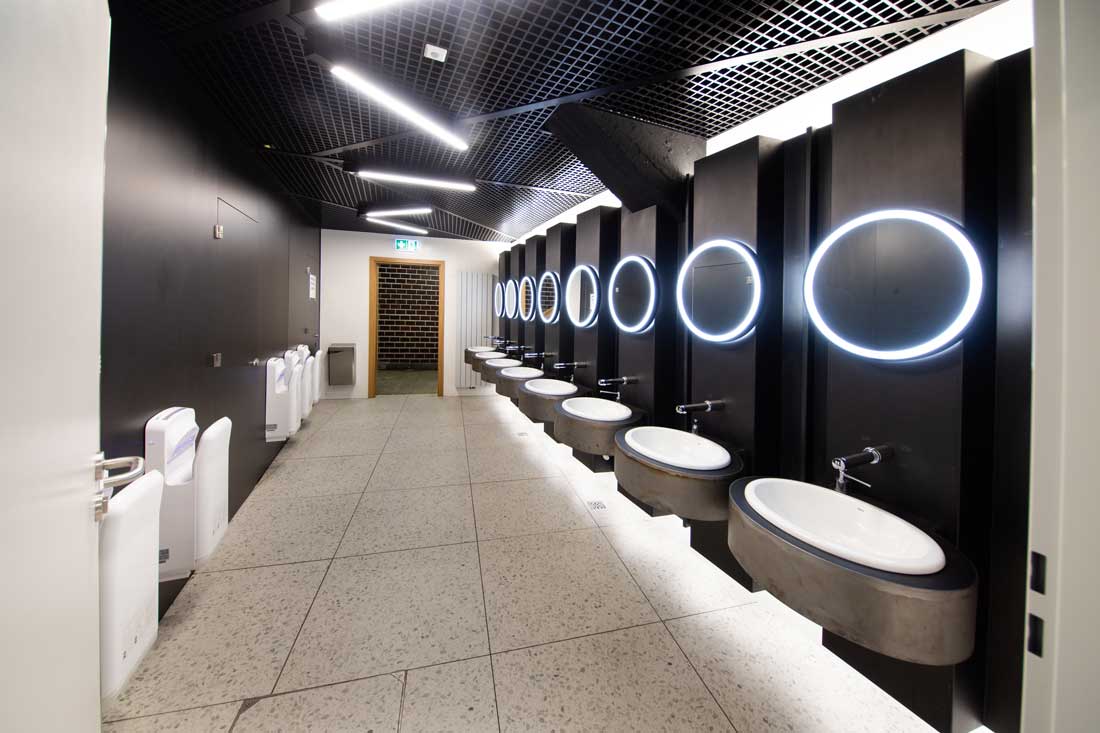 In 2020, more than 50 years after its inauguration, Spodek underwent a critical phase of renovation, led by 2G Studio. With wear over time and growing demands from contemporary audiences and performers, a refurbishment was essential to preserve its relevance and operational integrity. The bathrooms were a critical area that needed a full upgrade and Roca helped the team achieve the final result, one which fit in with the historic legacy of the arena and designed to function with contemporary, high-use needs of a public space.