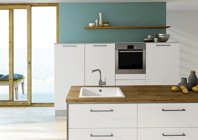 And now that we mention colors, what about faucets? With Mencia you will be able to choose kitchen faucets to match the finish of the sink as there are options in White, Black, Titanium and Chrome. If, on the other hand, you opt for a more traditional chrome finish, there is always the option of combining design and new features. For instance, in the Syra collection you will find a retractable kitchen faucet that allows you to extend the spout to make rinsing easier.