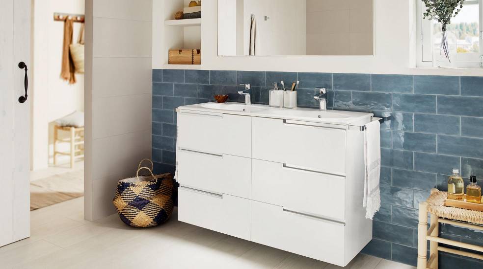 Sober, practical and very versatile, the Heima collection offers solutions that can be combined with up to 18 countertop basins, allowing you to place the basin in the center of the unit or on the side you choose.