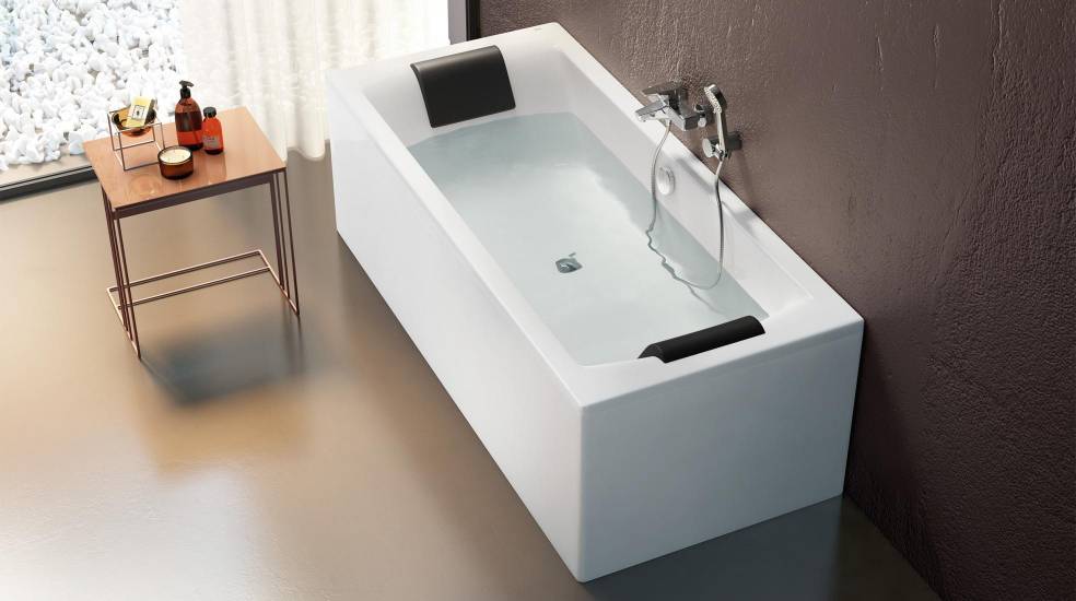 With the outstanding lightness of acrylics, the Hall bathtubs for two can be built-in and include two headrests so that sharing a bath, with or without whirlpool, becomes a true comfort experience.