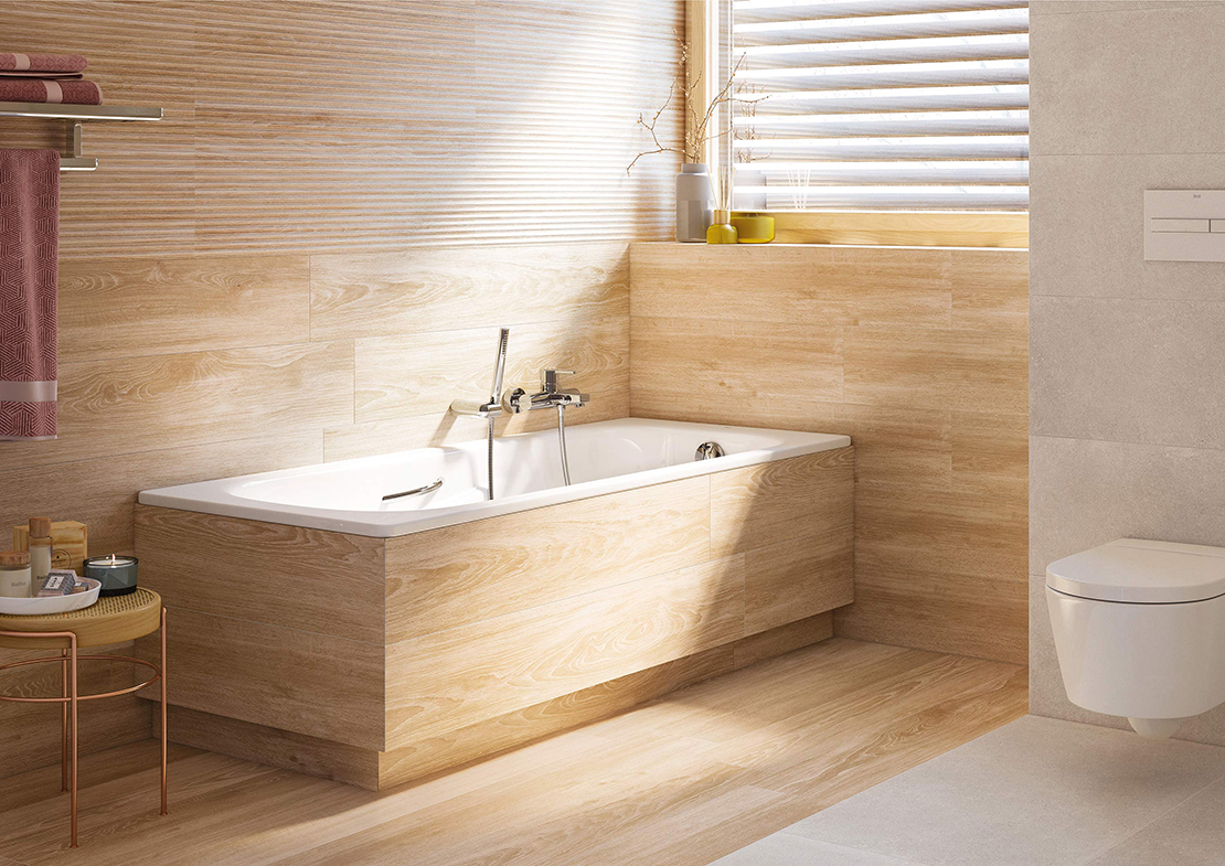 If you prefer a modern bath, experience the pleasant touch of Roca’s Solid Surface in joint-free surfaces with original profiles. While the Modo collection presents rectangular bathtubs in two dimensions and proposes the possibility of adding a drawer in Oak or Dark Mirror, Beyond opts for elegant curved lines in a Surfex® bath that invites you to dive into infinity.