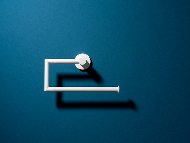 Roca’s Nu faucets add a boost of energy to any minimalist bathroom. Their bright, saturated colours and eye-catching shapes provide a playful touch to your morning routine. Imagine how striking a white washroom would look with a honey yellow faucet or a bathroom with dark blue tiles, only interrupted by the white accessories offset by white accessories from the Hotels range.