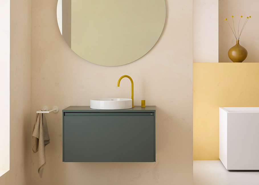The playful bathroom is also a space for relaxation and personal care rituals. Hand the 'do not disturb' sign on the door and indulge in exfoliants, creams, and facial massagers. Keep your bottles, jars, and everything you use in your beauty rituals in order with the organisers found in the drawers of the Optica bathroom furniture collection.