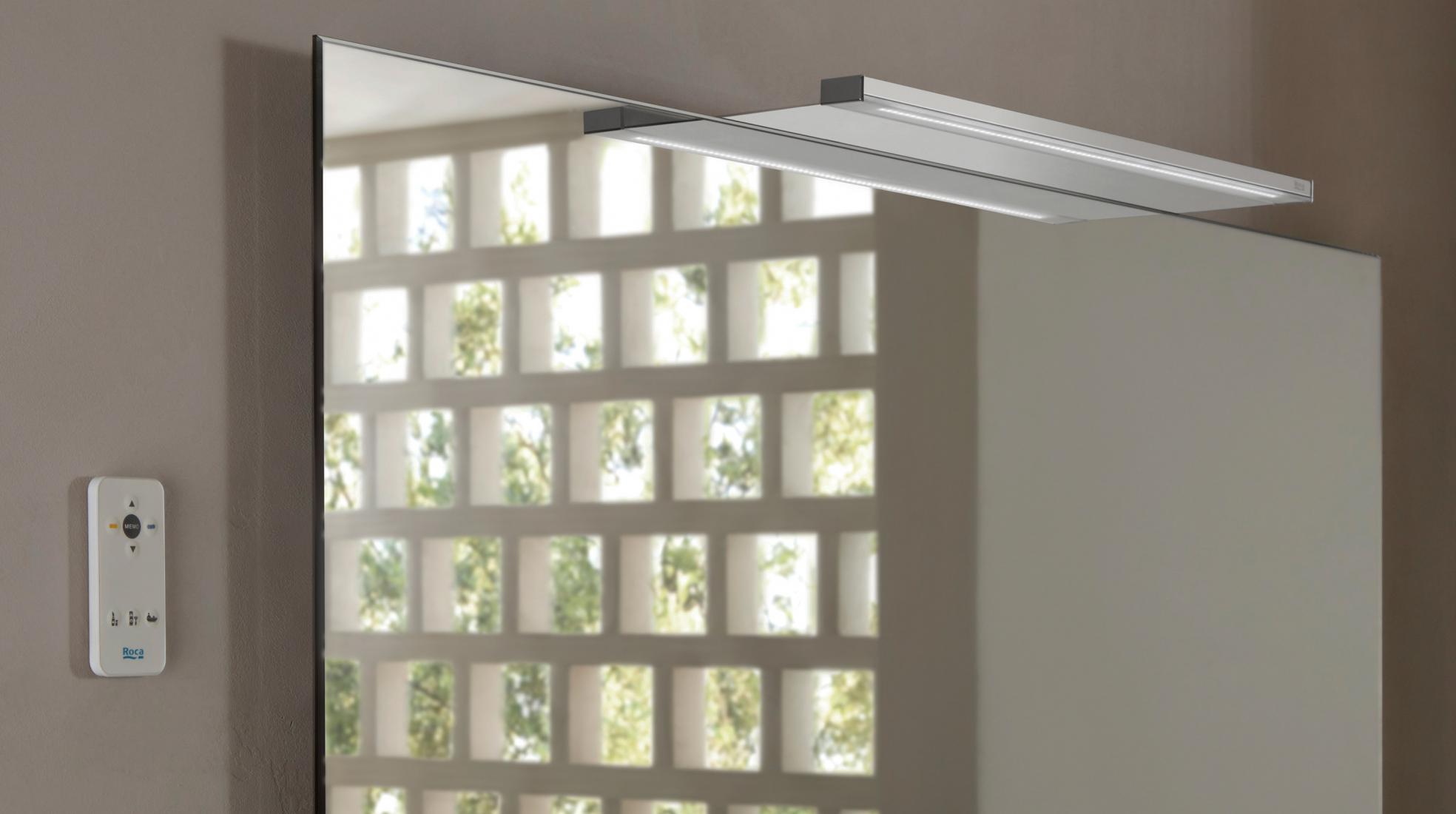 (Pictured: Roca’s Luna round mirror with perimetral LED lighting)