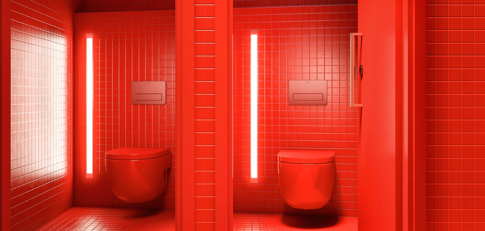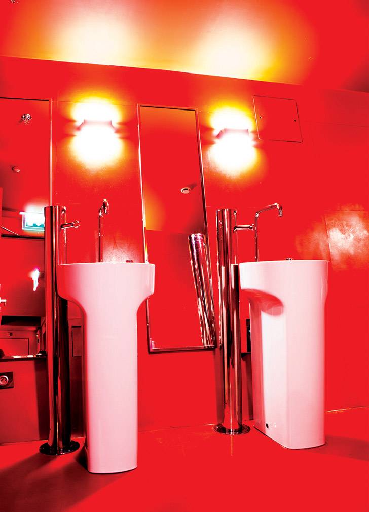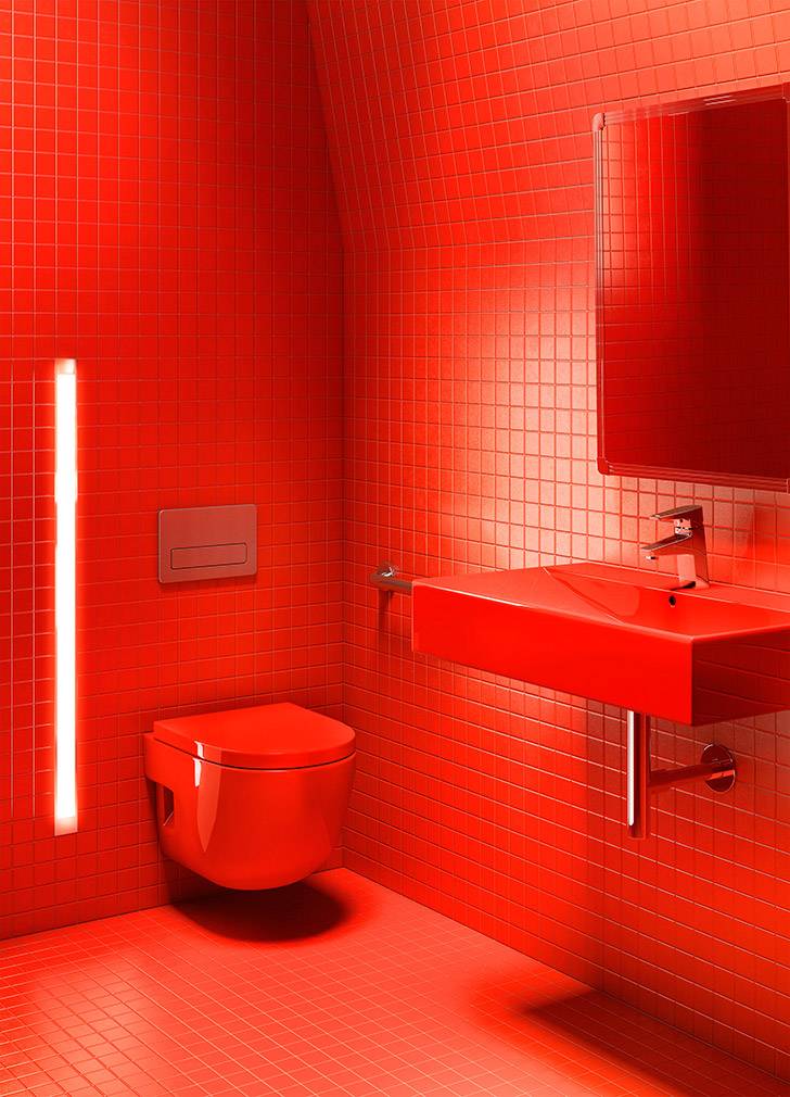 Roca bathrooms at the Eiffel Tower, a red tribute to the symbol of Paris