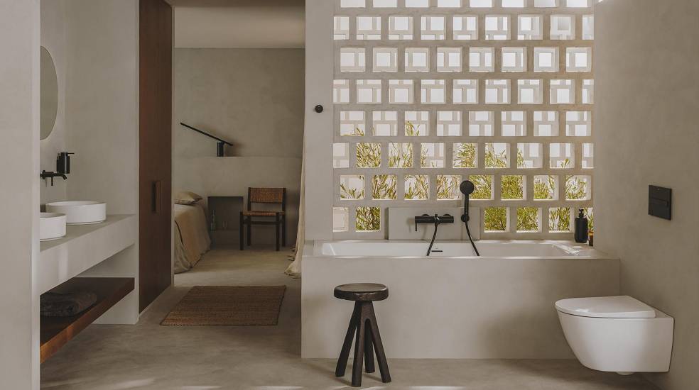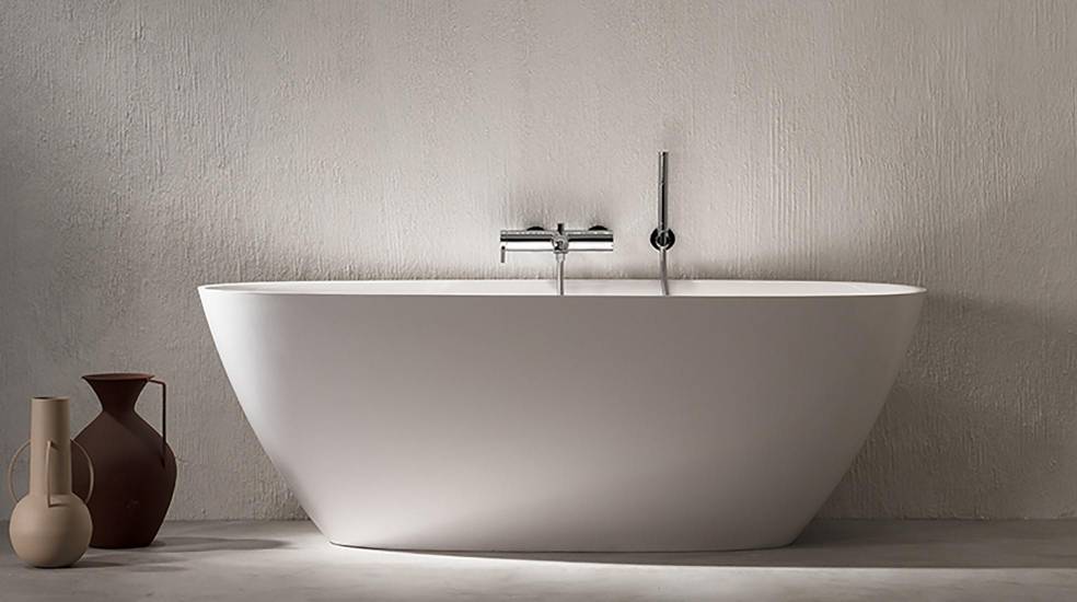 Nature-inspired materials, such as Roca’s Ona collection, and the architectural shapes and earthy surfaces of Tura activate our senses. The Raina bathtub promotes relaxation and wellbeing. The Cratos shower tray and Ariane bathtub have a rough finish, while the Pyros shower tray has a soft sandy texture. These materials offer a complete tactile experience.