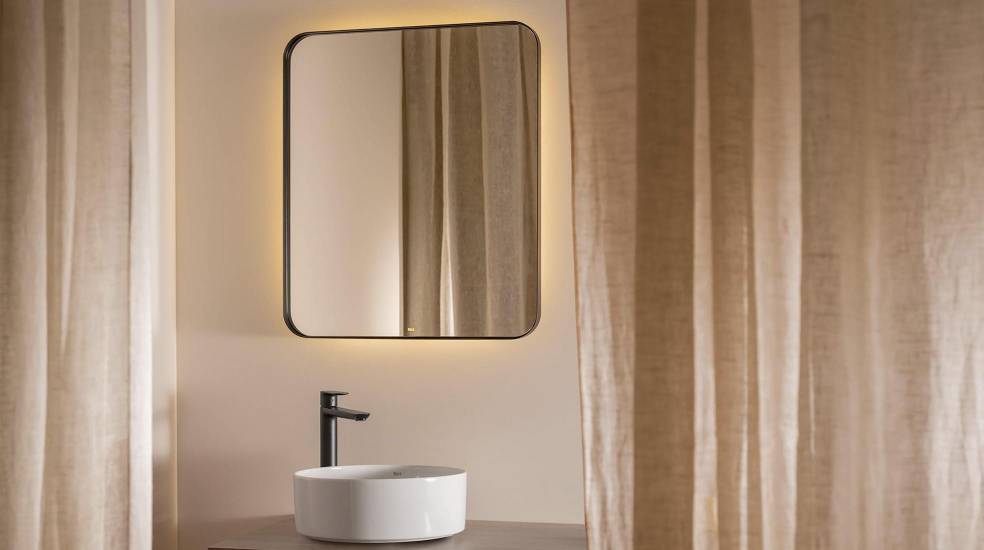 The Ohtake collection’s countertop washbasins and the Luna Frame mirror (available in March 2024) bring organic shapes to the bathroom, connecting us to the earth. The Gap and Tenet furniture, as well as Savana countertops feature cosy wood in walnut and Nordic ash finishes.