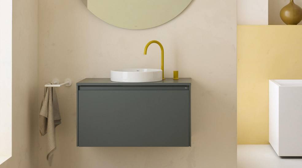 Reflecting this trend are the faucets in the Nu collection, which showcase surprising colours and innovative shapes, and combine ingenuity, sustainability and creativity. The bathroom furniture in the Optica and Tura collections also follow this trend with their atypical colours and innovative storage solutions. In Tura, the use of unusual tactile materials creates unexpected sensations in the bathroom.