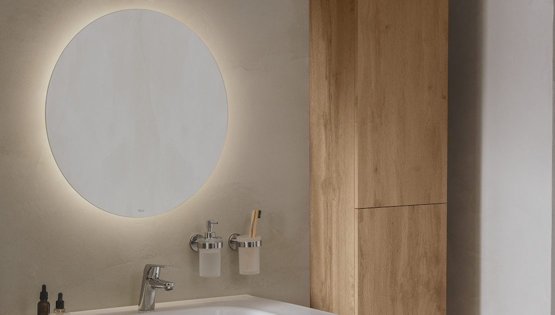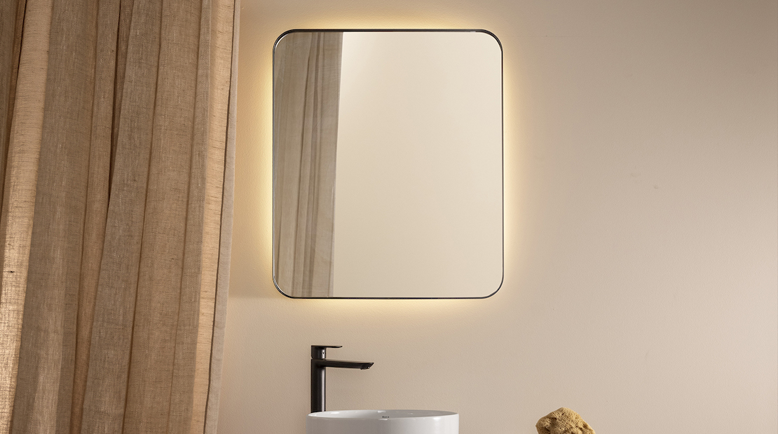The shape of your mirror can affect the look and feel of your bathroom. The oval mirror is a popular new look in bathrooms and offers an element of surprise and style. The Luna Ambient and Luna Frame collections both feature the elongated form. Square or rectangular mirrors can be used to create a sense of order and formality within a space, enhancing the classic or traditional ambience. Luna Frame square mirror with perimetral LED lighting offers an elegant and functional solution. Round mirrors can soften angular spaces, creating a harmonious visual environment. The Luna Ambient round mirror, with its perimetral LED lighting, is an ideal solution for achieving a polished and balanced look.