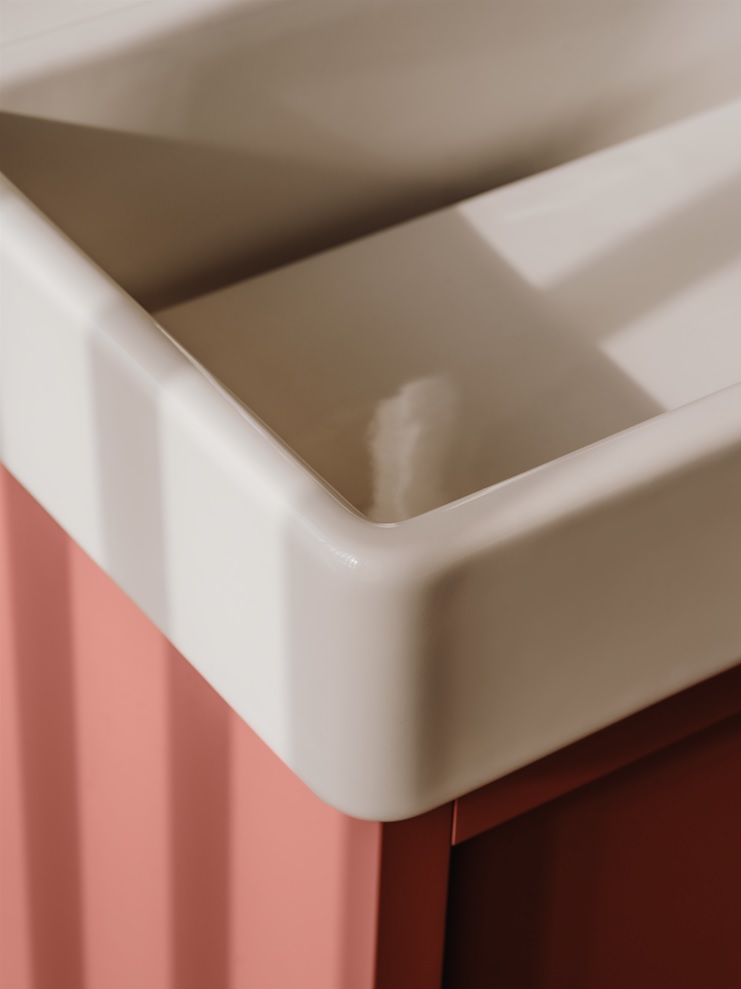 Based on architectural forms and modular shapes, the washbasins are unexpectedly bold and modern. The square and rectilinear lines are met by soft edges and subtle curves and they are designed with ample sink and counter space for everyday needs.